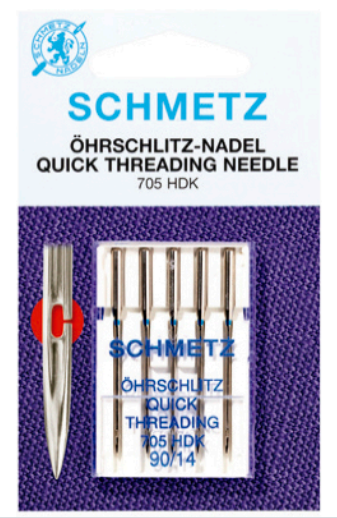 Agulha Universal com pequena ranhura na lateral do olho que permite deslizar a linha para dentro do olho.