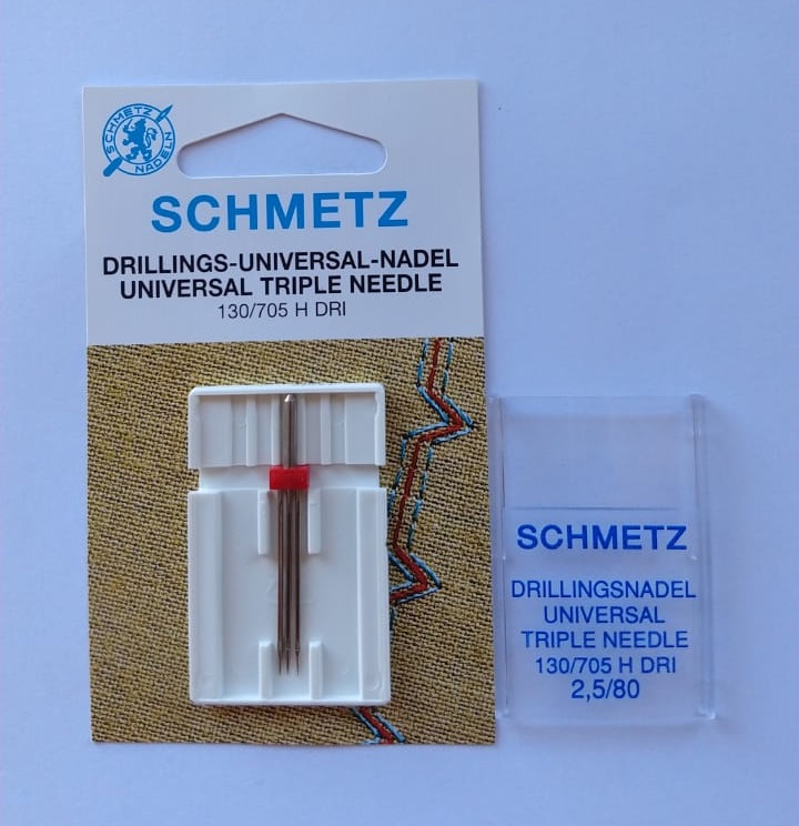 Agulha tripla 2,5mm Schmetz para pontos decorativos